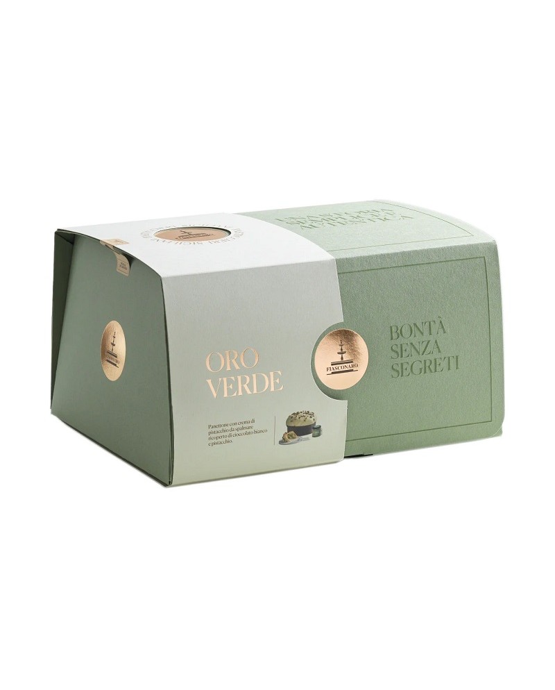 Dolce artigianale a lievitazione naturale (36 ore), il Panettone Oro Verde è un tributo al Pistacchio siciliano. L'impasto soffice, senza uvetta né canditi, è arricchito da una cremosa pasta di pistacchio e completato da una croccante glassa di cioccolato bianco in superficie, cosparsa di Pistacchi Interi e tritati. Il panettone viene inoltre venduto con un vasetto a parte di Crema di Pistacchio spalmabile, per farcirlo a piacimento. È un gusto distintivo, ricercato e molto apprezzato.