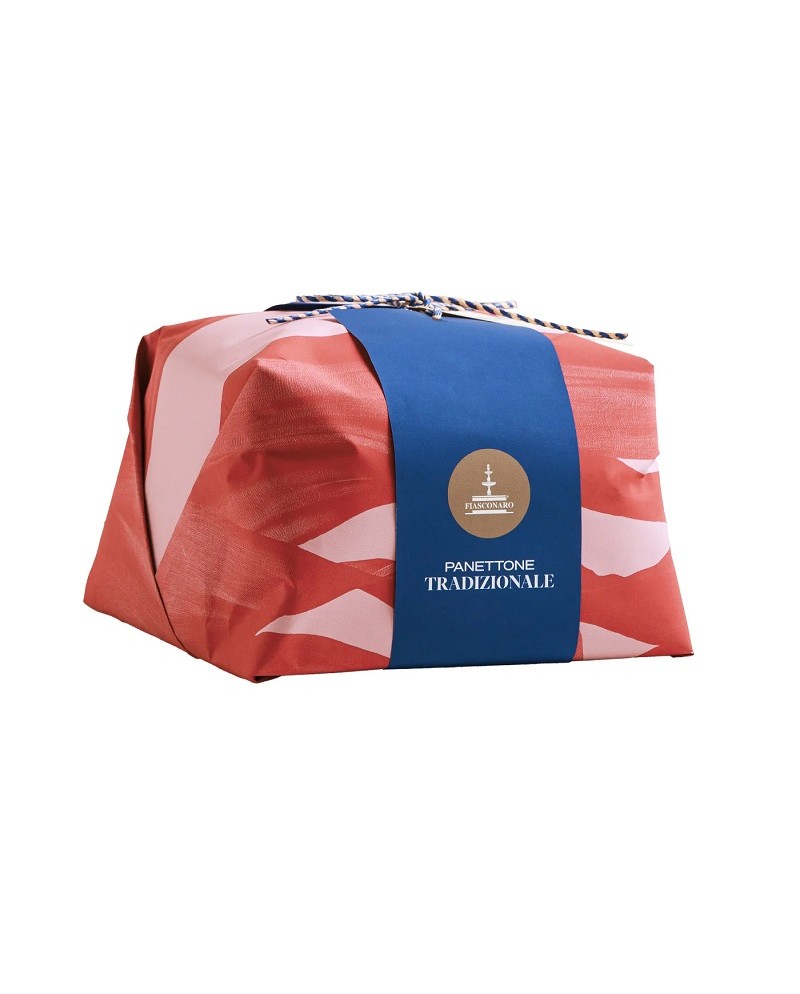 Panettone tradizionale artigianale a lenta lievitazione naturale (36 ore) con freschi canditi d'arancia (10%) e uvetta (14%) aromatizzata al vino "Marsala DOP" e "Terre Siciliane Zibibbo liquoroso IGP", senza glassatura, incartato a mano.