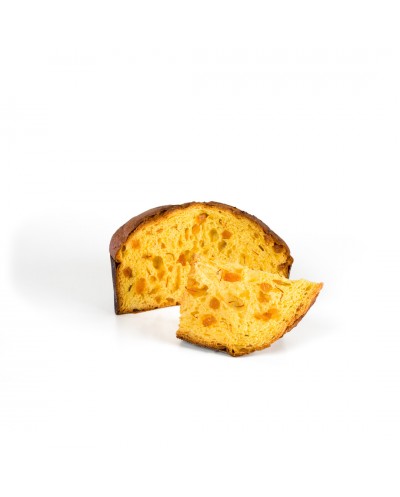 Panettone artigianale da 1 kg, a lievitazione naturale, che unisce sapori delicati e inusuali. L'impasto, soffice e profumato, è arricchito con succose pesche candite e aromatizzato con pregiato zafferano di Sicilia (spesso indicato come zafferano puro). Un dolce senza uvetta né scorze d'arancia candita, che offre un trionfo di morbidezza, un colore ambrato e un profumo delicato.