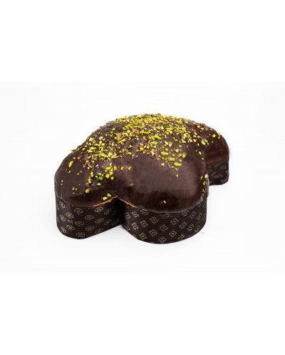 Colomba glassata al cioccolato bianco e granella di pistacchio salato con vasetto di crema al pistacchio salato .