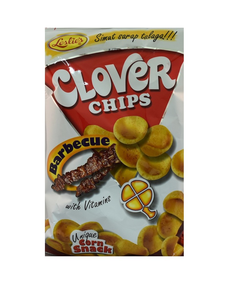 Le Leslie's Clover Chips BBQ sono uno snack croccante e saporito, popolare nelle Filippine. Si distinguono per la loro forma unica a trifoglio e la base di amido di tapioca e mais giallo. Sono condite con un intenso e caratteristico aroma al gusto barbecue, offrendo un mix equilibrato di dolcezza, affumicatura e sapidità.