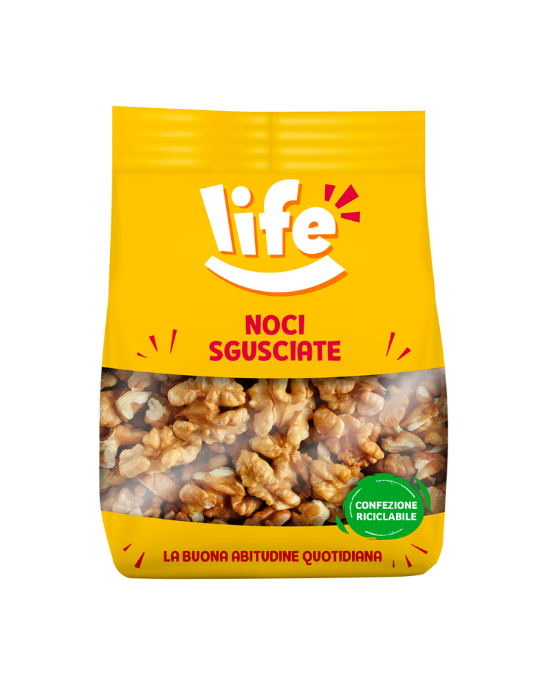 Noci sgusciate, al naturale e pronte all'uso, fonte di Omega 3, ideali come snack o per arricchire piatti dolci e salati.