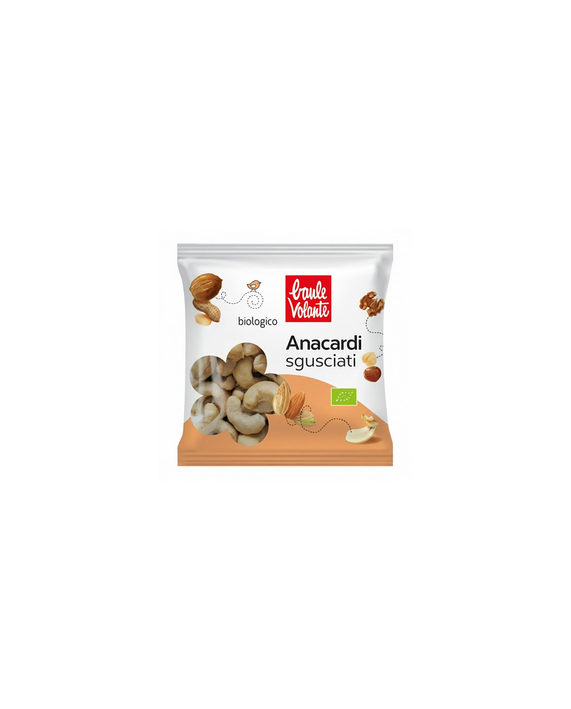 Gli Anacardi Sgusciati Baule Volante sono uno snack biologico pratico e nutriente, presentato nel formato "To-Go" da 30g, ideale per una pausa veloce o per ricaricare le energie durante la giornata. Questi anacardi provengono da agricoltura biologica certificata e sono caratterizzati da una consistenza croccante e un sapore naturalmente dolce e burroso. Sono naturalmente privi di sale aggiunto e rappresentano un'ottima fonte di proteine vegetali e grassi buoni.