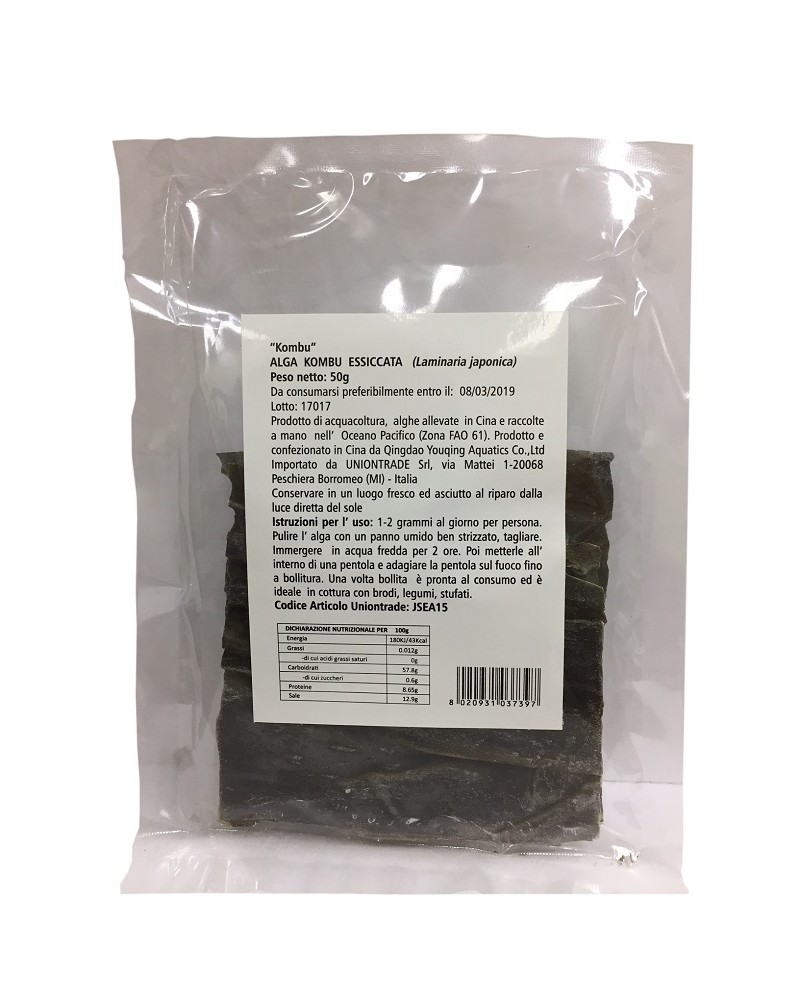 Ingredienti: Alga Laminaria essiccata (Laminaria japonica o Laminaria ochroleuca a seconda della varietà). Possibili Allergeni: Può contenere tracce di pesce, crostacei o molluschi, a causa dell'ambiente di crescita e lavorazione.