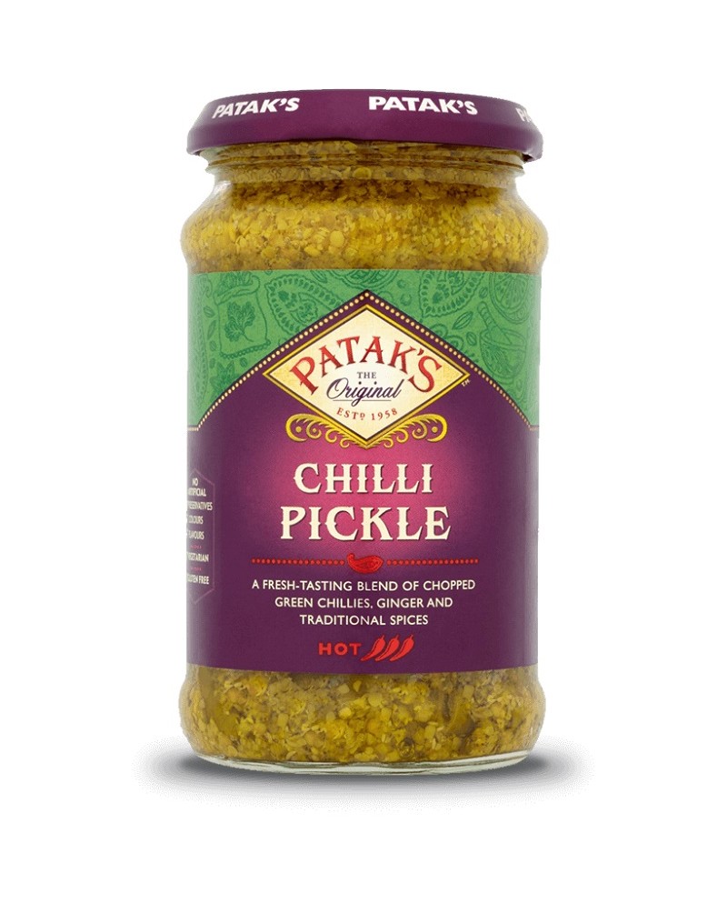 Patak's chilli pickle in barattolo da 250ml. Gustosa pasta con un mix di peperoni verdi, zenzero e spezie.