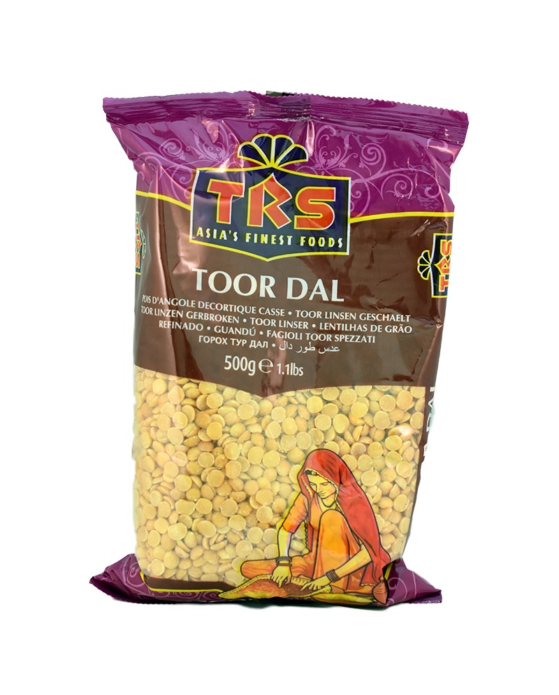 Trs toor dall in confezione da 500g. Lenticchie gialle ricche di proteine e fibre alimentari, consumate prevalentemente in India, Africa e America Latina. Di solito vengono bolliti, e accompagnano riso e pane.