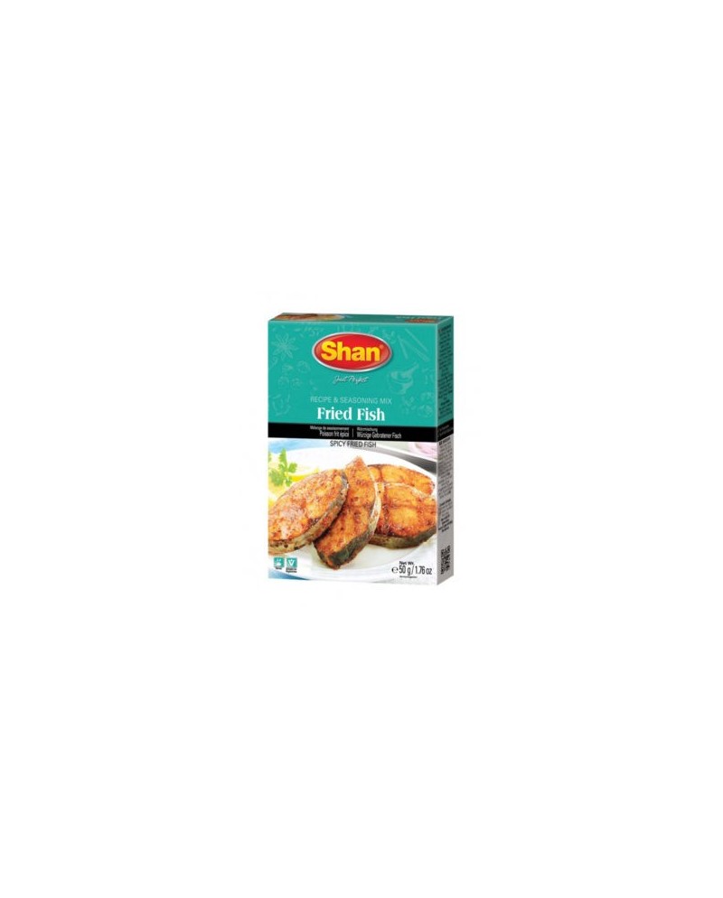 Shan fried fish in confezione da 50g. Mix di spezie in polvere per la preparazione di pesce fritto croccante e saporito. La miscela conferisce al pesce un sapore piccante, salato e leggermente acidulo (grazie all'acido citrico e, talvolta, al mango secco), tipico delle ricette di pesce fritto del Punjab e della cucina pakistana.