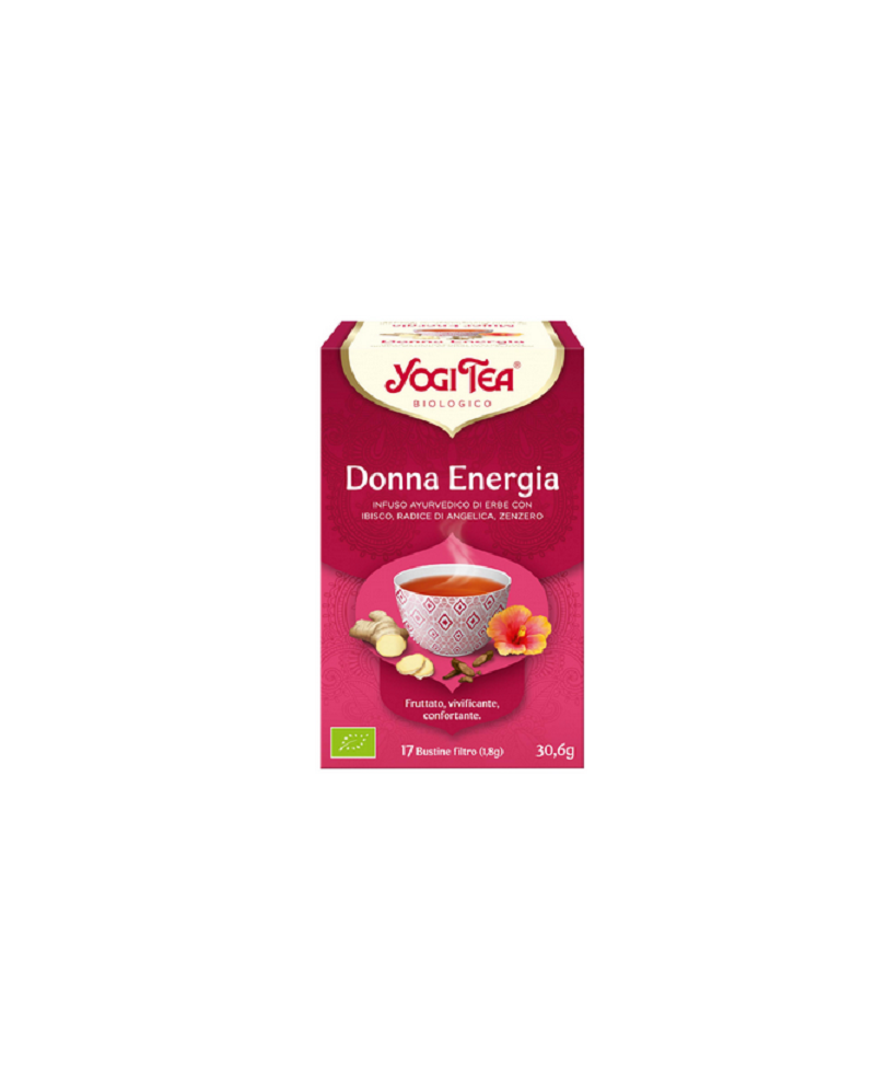 Yogi tea donna energia in confezione da 17 filtri. Miscela aromatizzata ibisco, radici di angelica e zenzero.