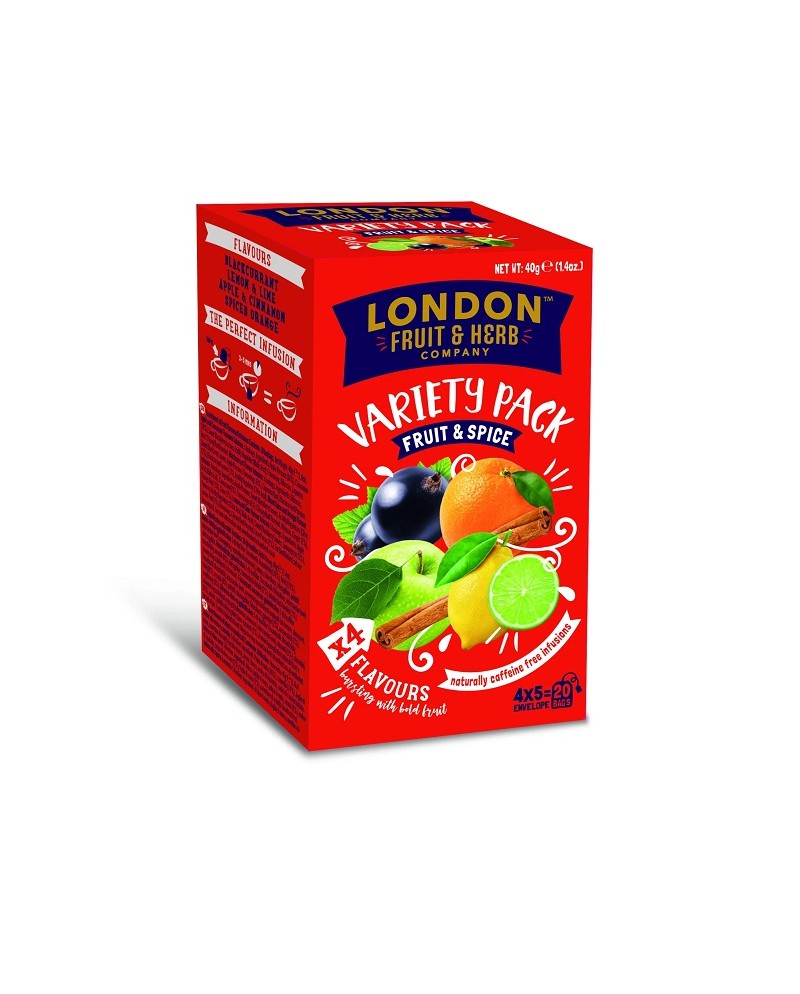 L'infuso London Fruit & Spice è un infuso aromatico che unisce la polpa di mela e i succhi di frutta (arancia e ibisco) con un mix di spezie calde come la cannella, i chiodi di garofano e lo zenzero, per una bevanda naturalmente senza caffeina.