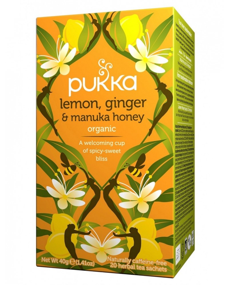 Pukka lemon ginger & manuka honey in confezione da 20 filtri. Un sapiente mix di limone, zenzero e miele di Manuka, questa miscela rivitalizza anima e corpo.
