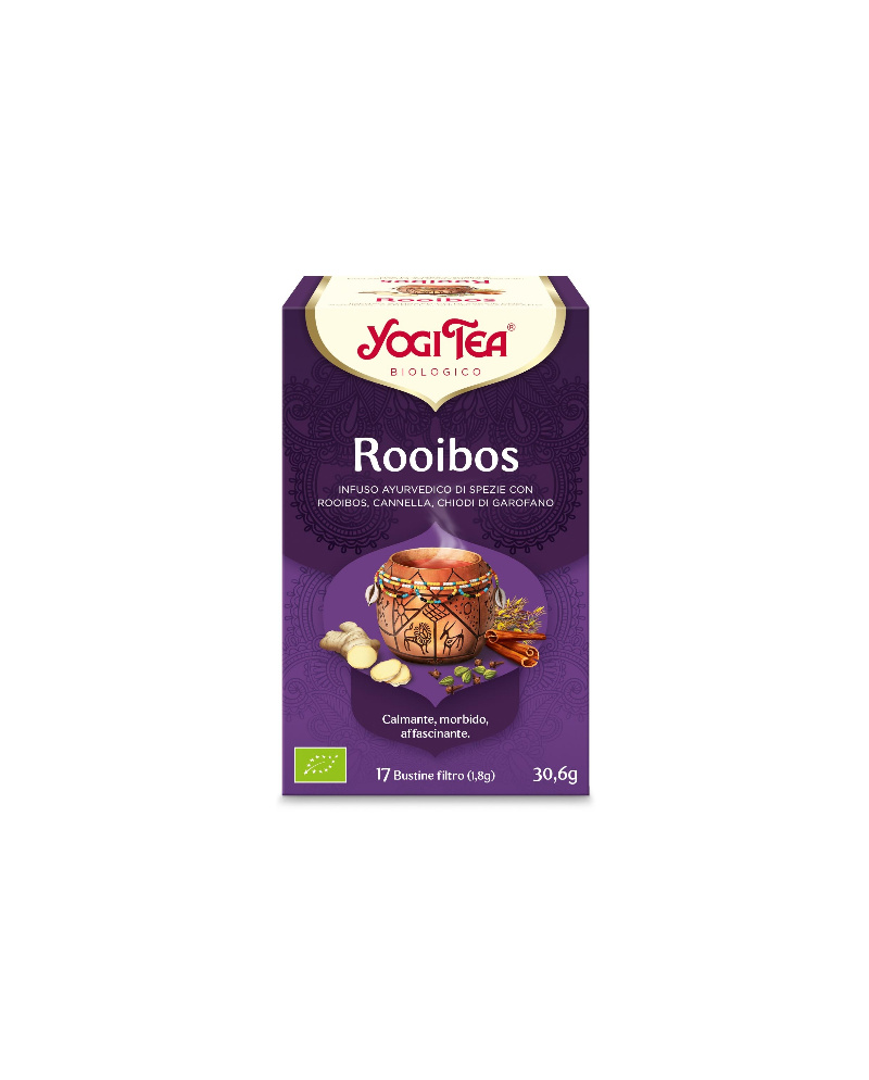 Yogi tea rooibos in confezione da 17 filtri. Il tè nazionale sudafricano con rooibos armoniosamente miscelato con spezie aromatiche come la cannella, lo zenzero e i chiodi di garofano.