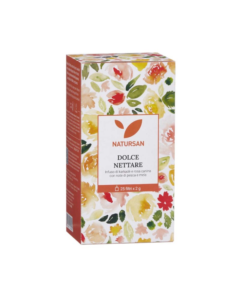 Ingredienti: karkkadè, rosa canina, mela, arancia scorza, aromi, pesca, aroma naturale.