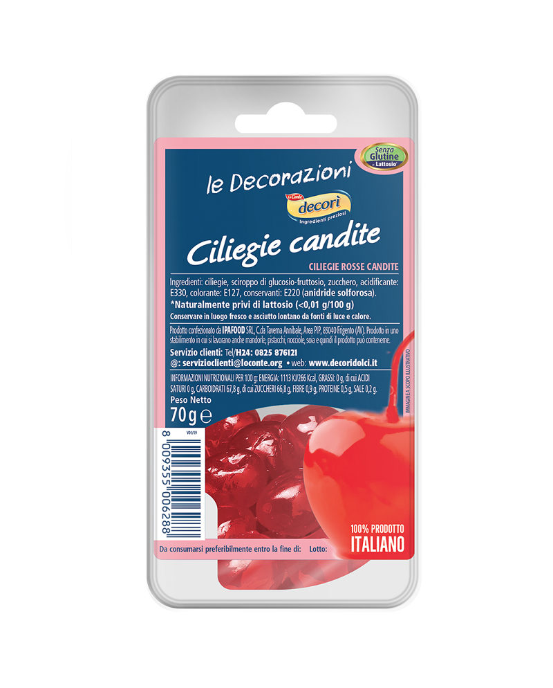 Ciliegie, sciroppo di glucosio-fruttosio, zucchero, acidificante: E330, conservanti: E202, E220 (anidride solforosa).