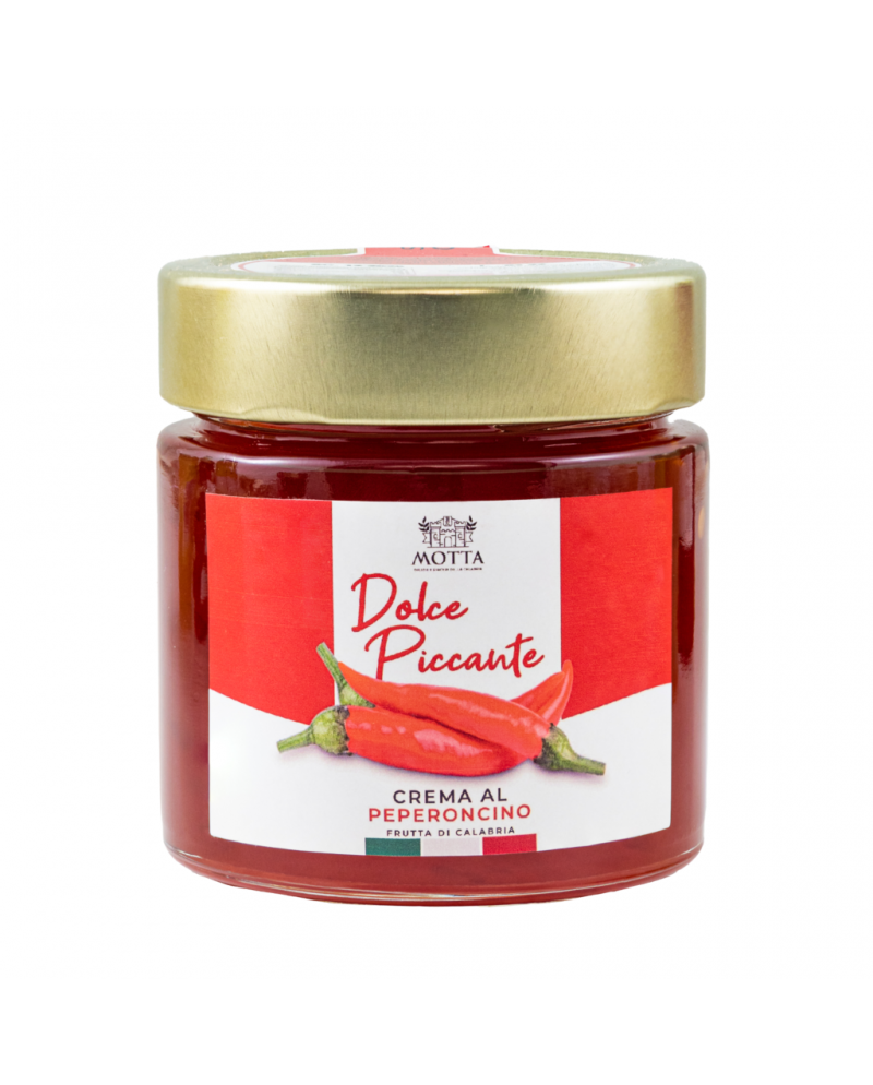Crema di peperoncino piccante calabrese spalmabile realizzata artigianalmente dall’azienda Consorzio Motta. Prodotta con soli ingredienti italiani. Questa crema si caratterizza per un sapore dolce e delicato con retrogusto leggermente piccante. Ideale da spalmare su formaggi freschi ed in particolare sulla fontina o semplicemente da spalmare sui crostini e bruschette.
