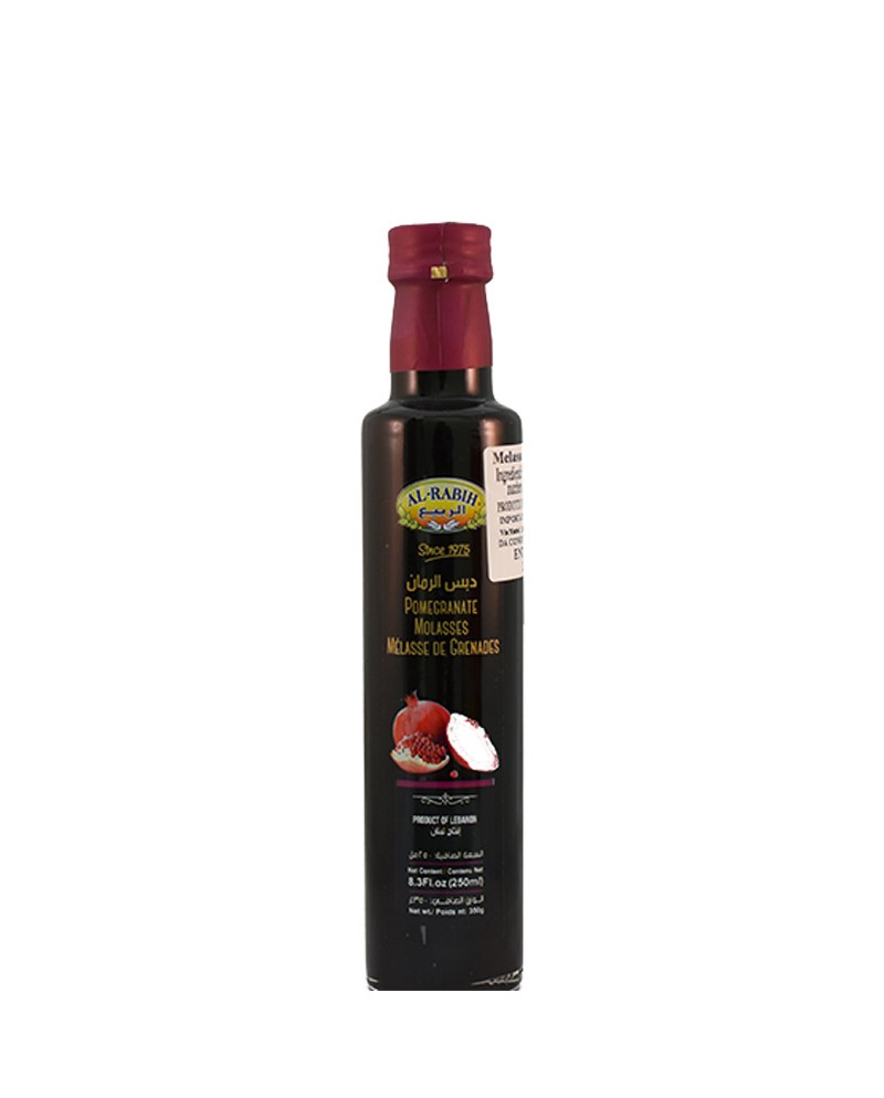 Melassa di melograno Al Rabih in bottiglia da 250ml. La melassa di melograno è perfetta per guarnire dolci e gelati ma è anche conosciuta ed usata nelle cucine mediorientali e persiane per la preparazione di piatti salati.