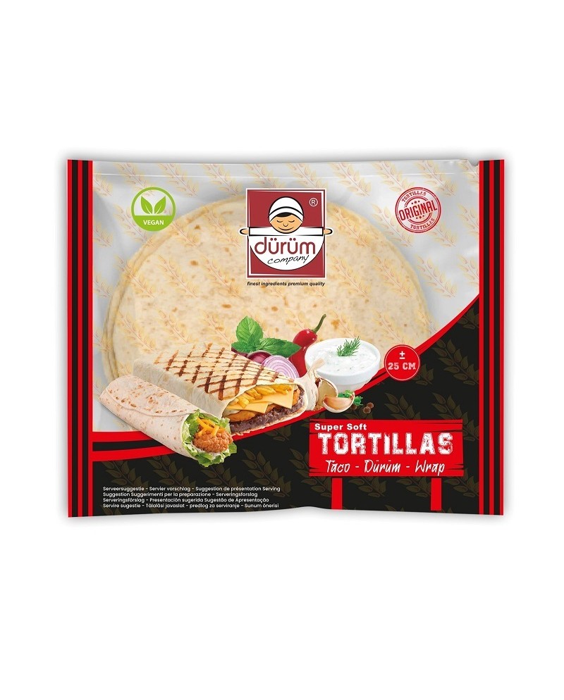 La tortilla Durum è perfetta per la preparazione del kebab tradizionale. A sfoglie sottili, non lievitato, perfettamente avvolgibile e arrotolabile, da farcire per realizzare appetitose specialità. Prodotto Halal. Contiene frumento.