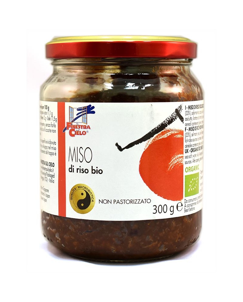 Il Miso è un alimento ricco in proteine ed enzimi vitali. Prodotto artigianale non pastorizzato. Per svolgere le sue proprietà, il Miso non deve essere pastorizzato, perché la pastorizzazione inattiva i lattobacilli, facendo perdere gran parte del suo effetto benefico. Questo speciale miso di riso viene elaborato partendo dal riso integrale.Vengono utilizzati soltanto ingredienti di qualità ed acqua di pozzo, che attraverso due anni di stagionatura in barili di cedro danno origine a questo condimento inimitabile.Durante la fermentazione, le proteine della soia sono demolite fino ai singoli costituenti. Tale predigestione rende le proteine estremamente assimilabili. Importante è la grande quantità di enzimi che stimolano la digestione di proteine, grassi e carboidrati e lattobacilli che creano una flora batterica intestinale sana.SOIA* (47%), riso integrale* (33%), sale marino, acqua, koji (Aspergillus oryzae).