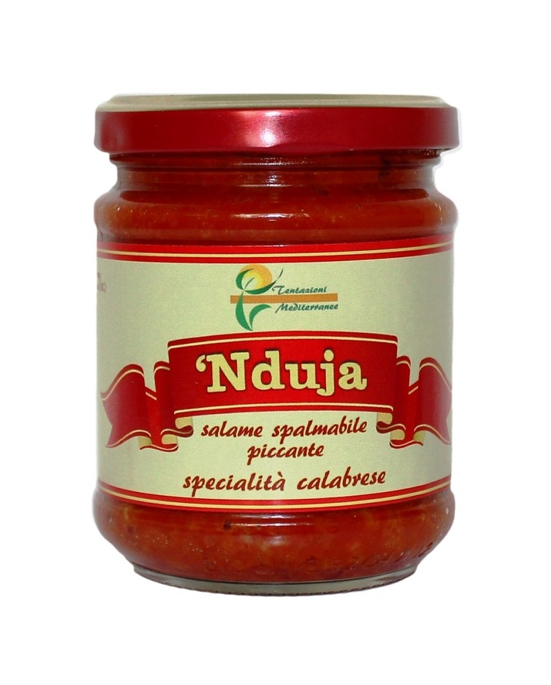 L’ ‘nduja è una preparazione tipica calabrese, realizzata con un macinato di carni scelte di suino, aromatizzata con peperoncino di Calabria ed altre spezie.