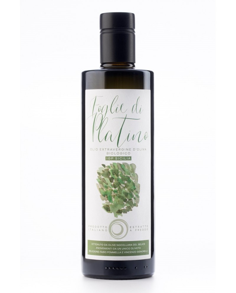 Olio evo bio monocultivar nocellara del belice IGP Sicilia 50cl Foglie di platino