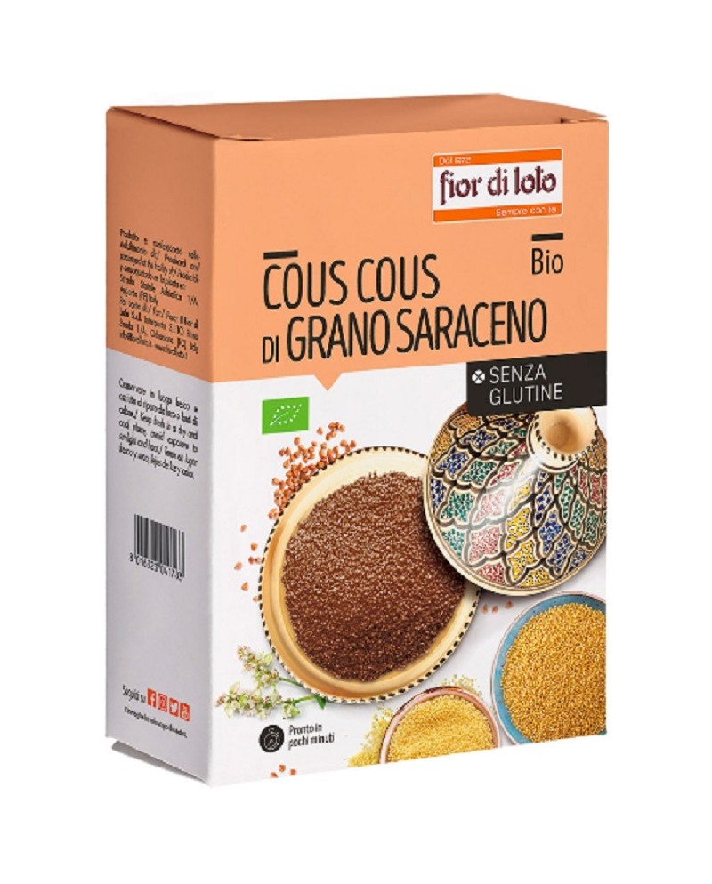 Il cous cous di grano saraceno è realizzato con il metodo tradizionale di preparazione del cous cous, utilizzando però lo sfarinato di grano saraceno che lo rende naturalmente senza glutine e fonte di fibre. Ingredienti: Sfarinato di grano saraceno bio. Modo d'uso: Metti il cous cous in una ciotola e condiscilo con un cucchiaio di olio extra vergine d'oliva. Nel frattempo porta a bollore l'acqua salata o il brodo. Versa quindi sul cous cous e copri, lasciando riposare per alcuni minuti e sgranando di tanto in tanto. Condisci a piacere con le verdure del brodo, spezie e sapori.