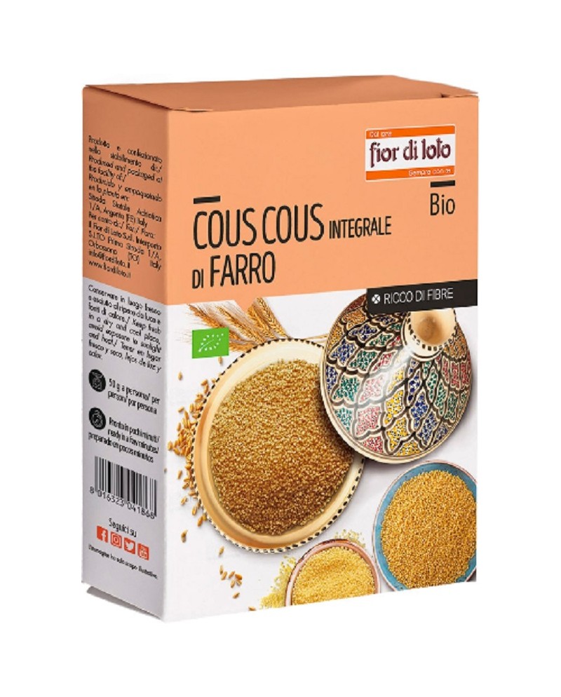 Il cous cous di farro integrale è una valida alternativa al cous cous di grano duro. Realizzato per agglomerazione dello sfarinato di farro, da cui si ottengono granelli grandi circa un millimetro. Ingredienti: Sfarinato integrale di farro bio. Modo d'uso: Metti il cous cous in una ciotola e condiscilo con un cucchiaio di olio extra vergine d'oliva. Nel frattempo porta a bollore l'acqua salata o il brodo. Versa quindi sul cous cous e copri, lasciando riposare per alcuni minuti e sgranando di tanto in tanto. Condisci a piacere con le verdure del brodo, spezie e sapori.
