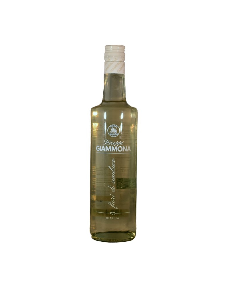 Sciroppo Giammona ai fiori di sambuco con aromi naturali, in bottiglia di vetro da 70cl.