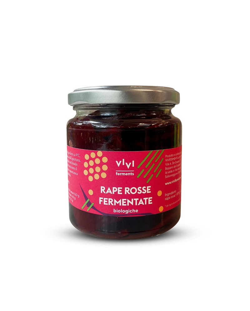 Le Rape Rosse Fermentate di Vivi Ferments sono preparate artigianalmente attraverso un processo di latto-fermentazione spontanea che ne esalta la naturale dolcezza terrosa, aggiungendo una piacevole nota acidula. Grazie alla mancata pastorizzazione, questo prodotto preserva l'integrità dei probiotici naturali e degli enzimi, risultando altamente digeribile e alleato del benessere intestinale. Il loro colore intenso e la consistenza croccante le rendono perfette per guarnire insalate, accompagnare formaggi o dare un tocco gourmet a panini e poke bowl.