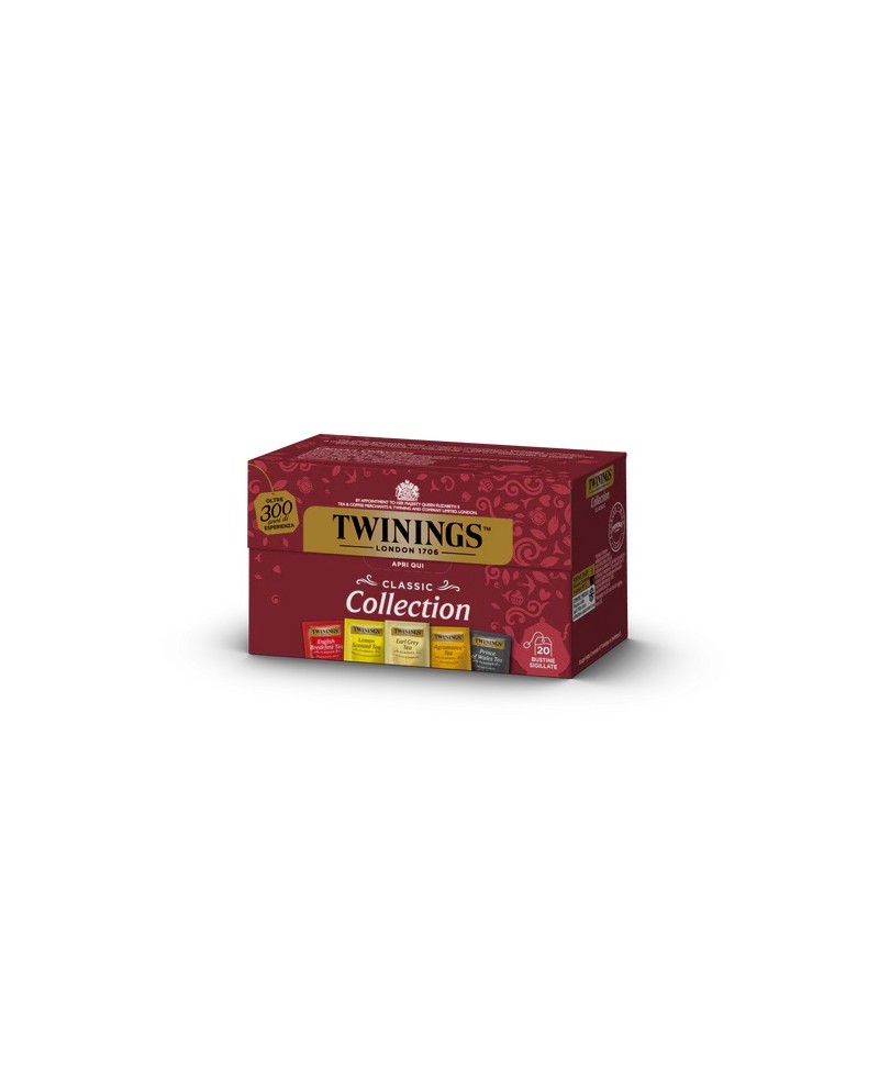 Una selezione dei cinque tè neri classici più amati di Twinings, che spaziano da miscele pure e robuste a miscele aromatizzate. Questa collezione è ideale per chi desidera esplorare il mondo del tè nero. La confezione contiene 5 diverse varietà (4 filtri per gusto): English Breakfast, Earl Grey, Lady Grey, Darjeeling, Prince of Wales.