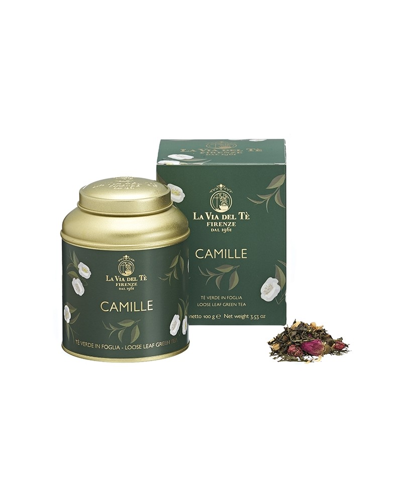 Te' camille La via del tè in confezione da 100g. Tè verdi giapponesi e cinesi con boccioli di rosa, fiori d'arancio e ribes rosso.