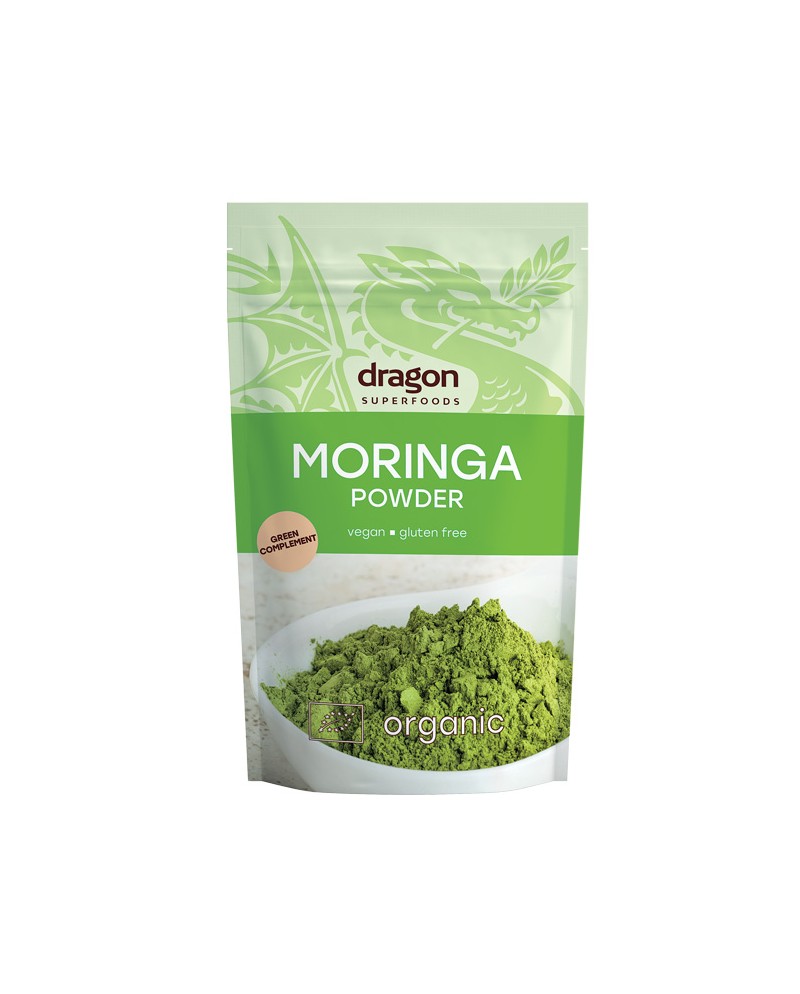 La Moringa in polvere bio 200g di Dragon Superfoods è un integratore alimentare e superfood ottenuto dalle foglie essiccate e macinate dell'albero di Moringa (Moringa oleifera), coltivato biologicamente. È apprezzata per il suo elevato contenuto di proteine, fibre e micronutrienti, ed è considerata un "booster verde" per l'alimentazione quotidiana.