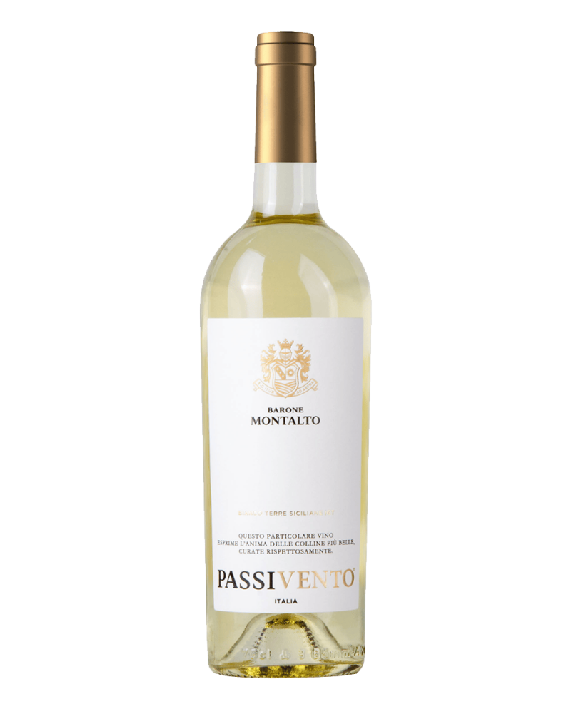 Il Passivento Bianco di Barone Montalto è un vino bianco siciliano che combina la freschezza e la mineralità dei vitigni autoctoni (come Grecanico e Catarratto) con la ricchezza aromatica dello Chardonnay. Il suo tratto distintivo è il Metodo Passivento®, un parziale appassimento delle uve (sia in pianta che in fruttaia ventilata) che ne aumenta la concentrazione di zuccheri e aromi, conferendo al vino un corpo più rotondo e un bouquet più intenso, pur mantenendo una piacevole freschezza.