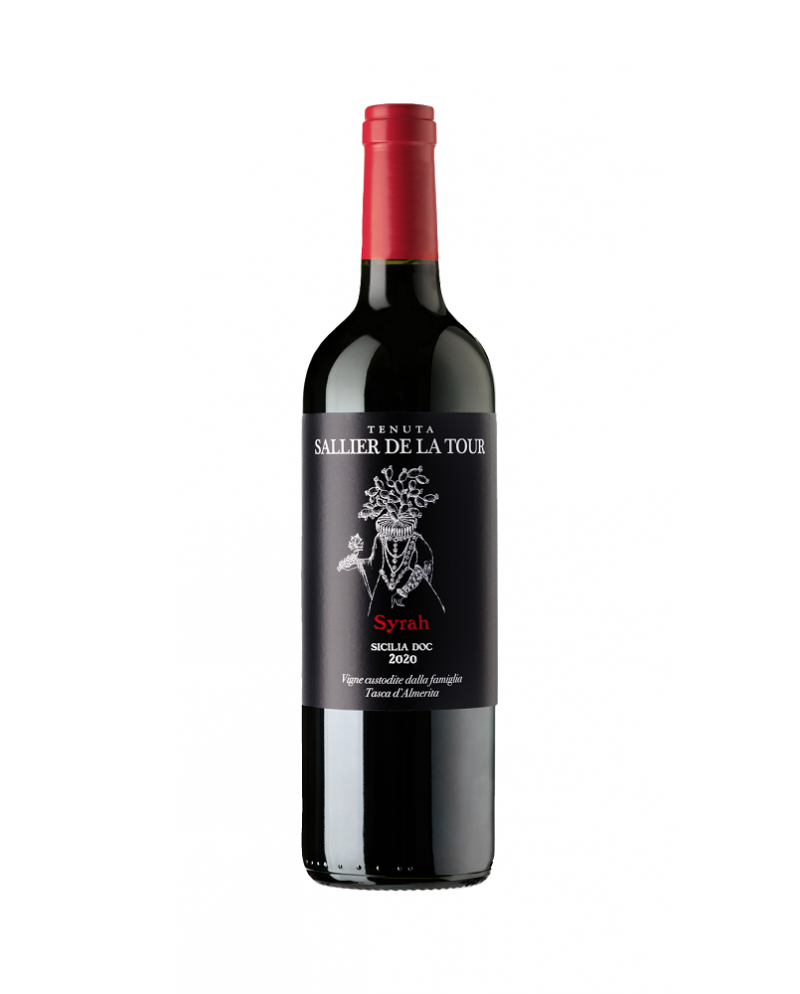 Syrah Sallier de la tour Tasca d'almerita in bottiglia da 75cl. Pregiato vino di colore rosso rubino dalle sfumature violacee, profumo intenso e fruttato con sentori di piccoli frutti neri e spezie. Equilibrato, morbido e dai tannini vellutati.