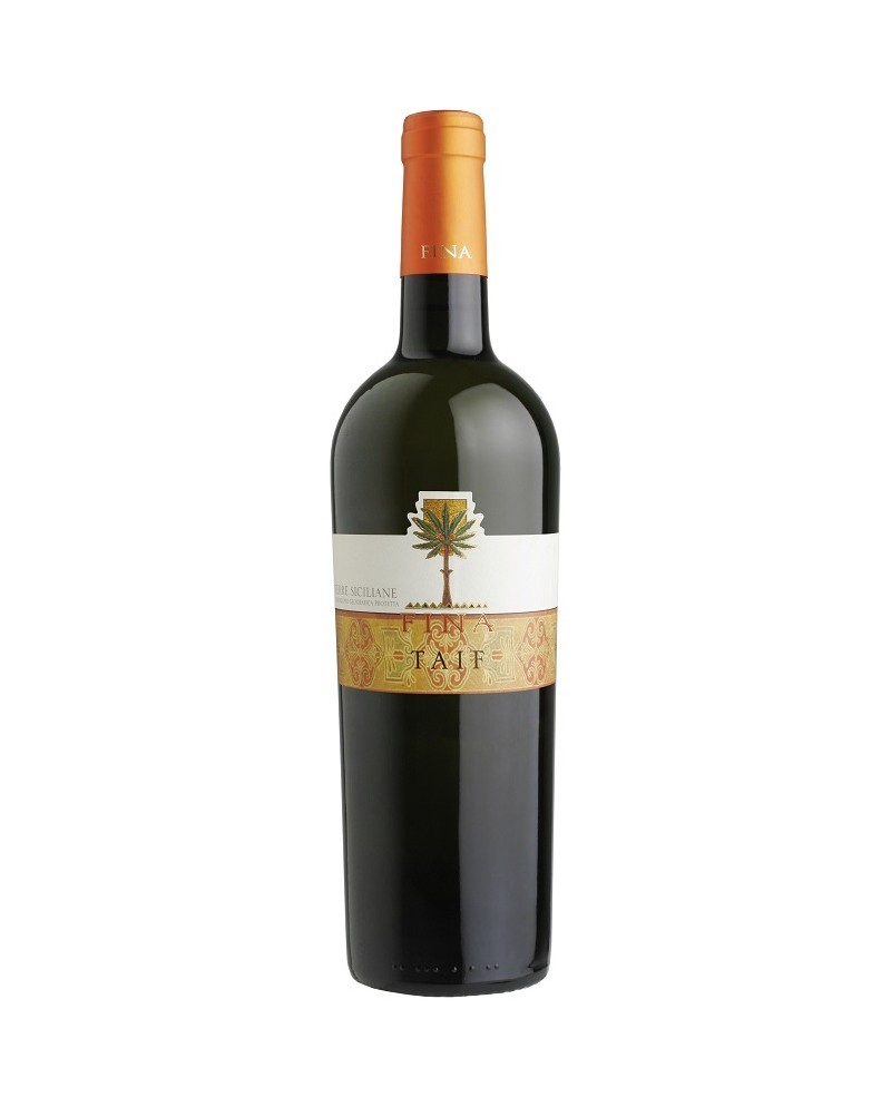 Taif zibibbo Fina in bottiglia da 75cl. Vino bianco rotondo, minerale, fresco, con ampio bouquet aromatico che spazia da profumi fruttati di pesca e mandarino a sentori erbacei di salvia, per chiudersi su note floreali di rosa e glicine. In bocca ha una nota inizialmente calda subito bilanciata dalla fresca e piacevole acidità.