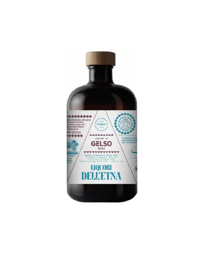 Liquore di gelso nero Liquori dell'Etna in bottiglia di vetro da 50cl. Ottenuto da Gelsi Neri raccolti sull'Etna nel mese di Luglio a quota 1000 metri, in contrada Monte Arso, a Ragalna.